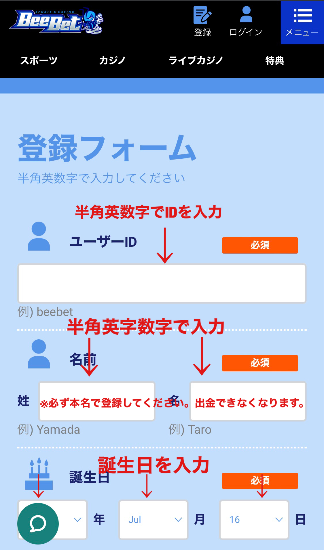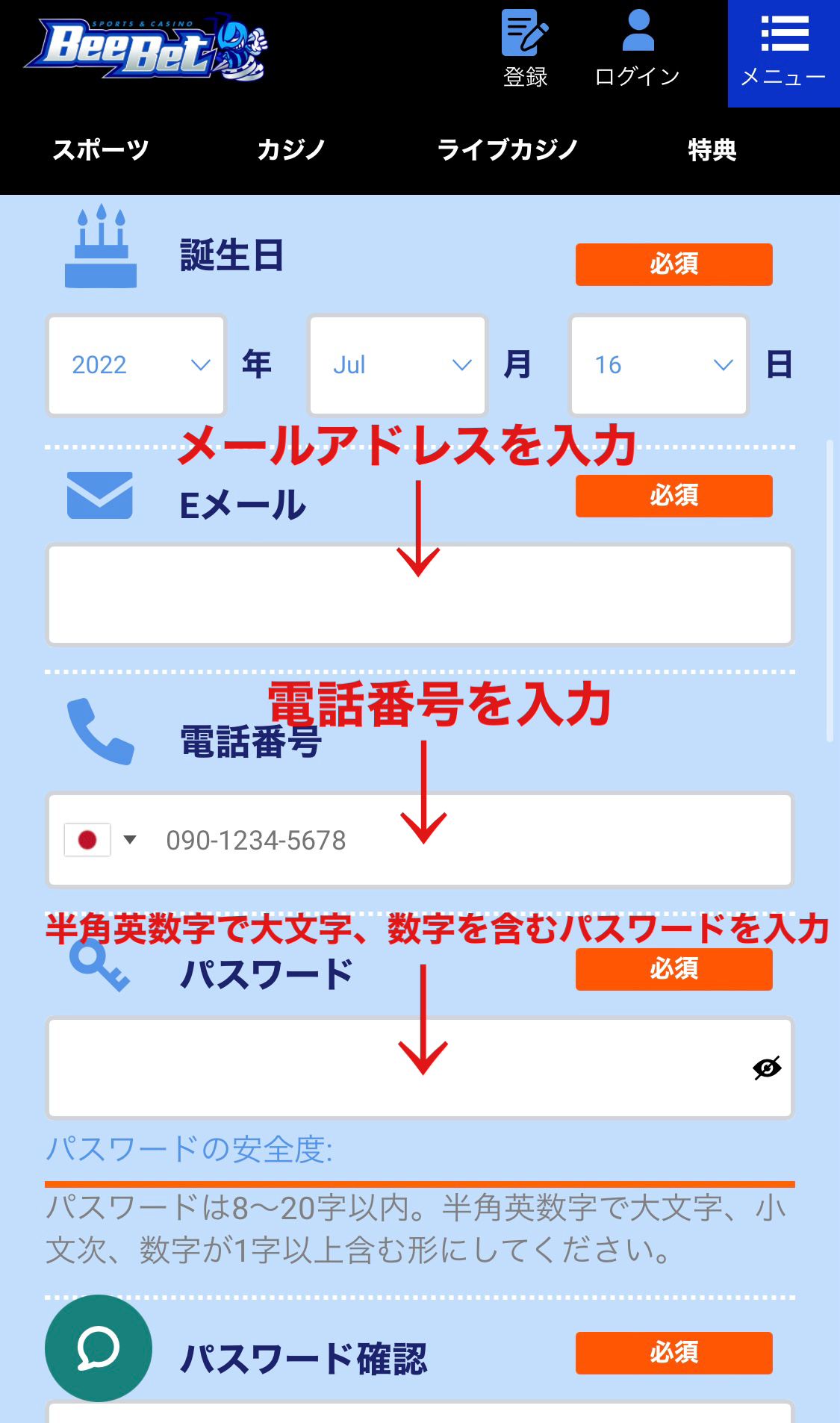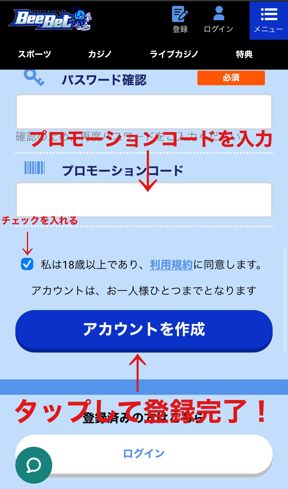 以上がBeeBet(ビーベット)の登録の手順でした。